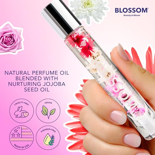 Blossom Roll on Rollerball Perfume Oil, Natural Ingredients, Essential Oils, Infused with Real Flowers, Made in USA, 0.20 fl. oz./5.9 ml, (Rose, Violet, Lily, Magnolia, Amber, Cedarwood), Classic Rose