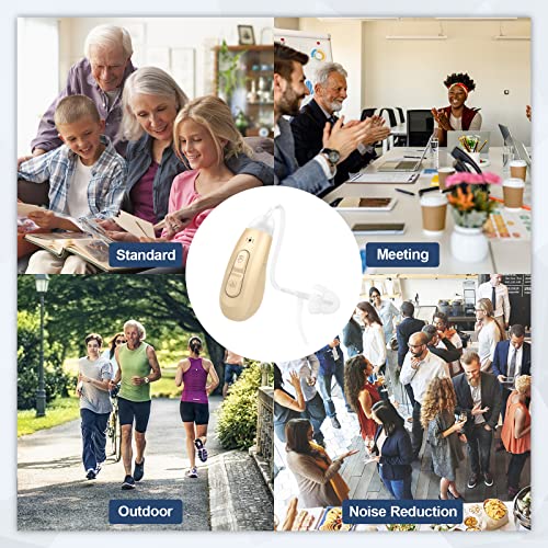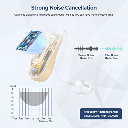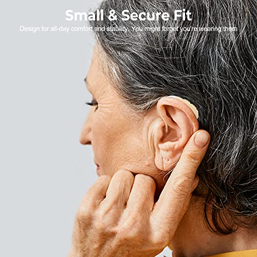 Bluetooth Hearing Aids, OTC Rechargeable Hearing Aids for Senior Adults with Mild to Moderate Hearing Loss, Noise Cancelling, Invisible, Comfort Fit, Power Display – Beige