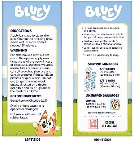Be the first to review “Bluey Kids Bandages, 3 Assorted Sizes 100 CT | Wear Like Stickers, Flexible Adhesive Bandages for Minor Cuts, Scrapes, and Burns. Great Gift idea for Kids.”