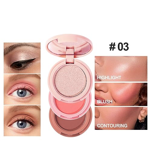 Blush and Highlighter Palette,3 in 1 Contour Palette,Cruelty-Free Matte Bronzer Powder,women’s brightening pearlescent highlighter,Eyeshadow powder makeup set (03#)