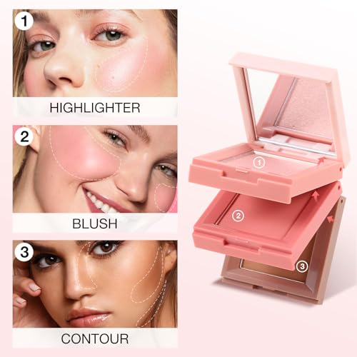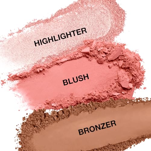Blush Highlighter Contour 3 in 1 Makeup Palette,Matte Shimmer Illuminator Compact Powder,Highly Pigmented Bronzer