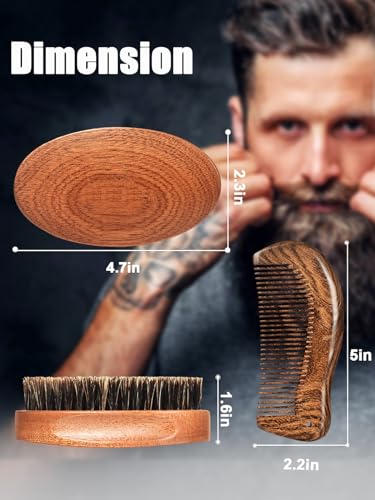 Boar Bristle Beard Brush & Comb Set for Men, Mustache Grooming Styling & Detangling Travel Kit, Natural Sandalwood Comb Untangles Your Beard