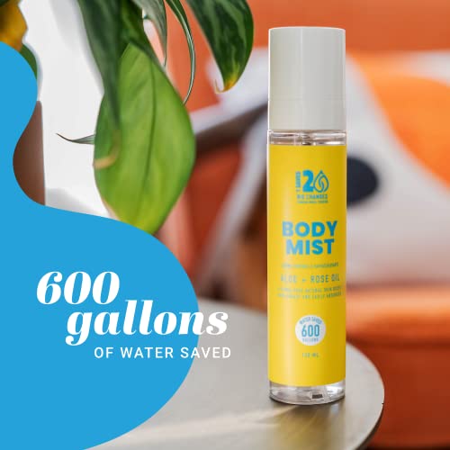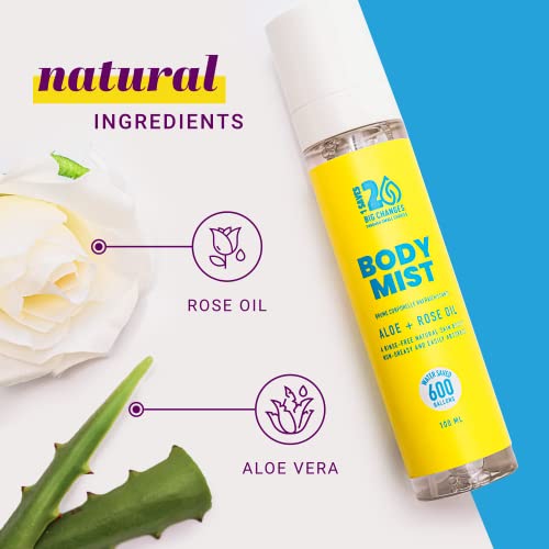 Body Mist Aloe + Rose Oil, Hydrating and Deodorizing with All-Natural Ingredients, Alcohol-Free, For All Skin Types