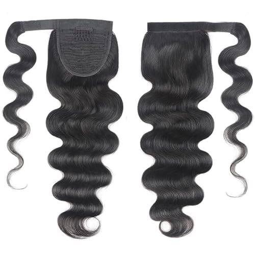 Body Wave Ponytail Extensions with Magic Paste Wrap Around Body Wave Human Hair Ponytails Extension for Women Natural Color 16 Inch