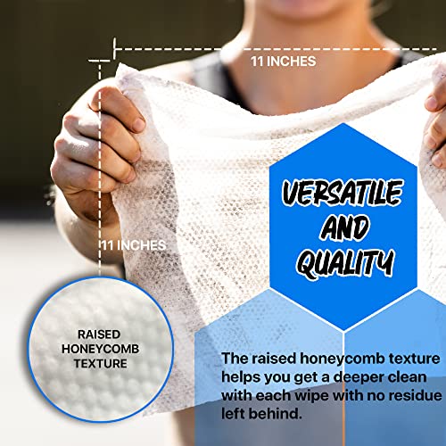 11”X11” CLEANSING BODY WIPES – Crafted from wood pulp & plant fibers, our large body wipes are sustainable, yet strong enough to not fall apart, so you can clean your face & body on-the-go.