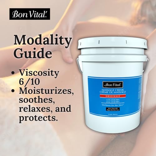 Bon Vital’ Original Massage Crème for a Versatile Massage Foundation to Relax Sore Muscles & Repair Dry Skin, Revitalize Skin and Lock in Moisture, Allows for Muscle Manipulation, 5 Gallon Pail