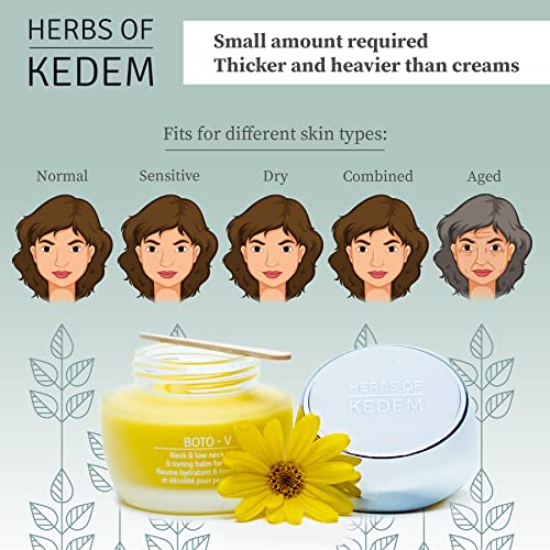 SMALL AMOUNT REQUIRED FOR DRY SKIN – Rich oily textured Chest and Neck Lift Balm helps to keep skin moist without clogging the pores. The Herbs of Kedem lifting balm is thicker and heavier than creams.