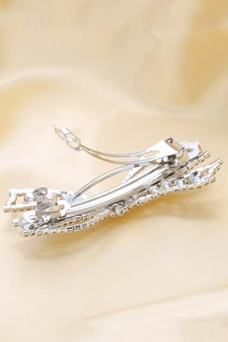 Bow barrette made of rhinestones. Silver hair clips are carefully crafted to ensure their durability and maintain their shine over time.