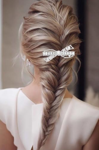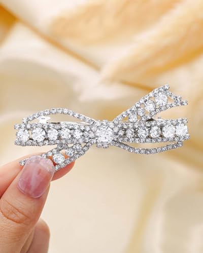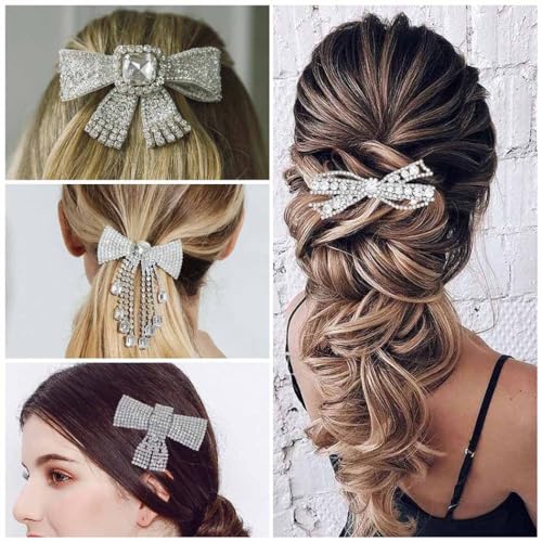 Silver rhinestones hair clip bows approx 1.2*3.1 inches fit for most women.