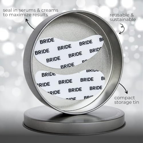 Cute and giftable under eye masks for any Bride To Be. Incorporate under eye patches to depuff, brighten, and reduce fine lines in your bridal beauty routine and to get ready for the big day. The Bride Essential Eye Mask is a reusable under eye patch – just 1 pair that can be reused hundreds of times as a sustainable solution to traditional skincare eye masks. HOW TO USE: Pair these patches with your favorite eye serum or eye cream. This allows you to customize your treatment with quality ingredients. Apply your chosen serum or cream first and wait 10 seconds for the ingredients to get tacky. Then put your Bride Essential Eye Patches in place. Let sit for 10-20 minutes. Rinse or wash your Eye Patches with mild soap and keep in your tin until you’re ready to use them again. There are so many benefits including: Increased hydration, Reduced fine lines/wrinkles, brightening, depuffing and more. The best way to achieve results is through consistency and a daily routine. On a mission to help you look and feel like a million bucks on your big day!