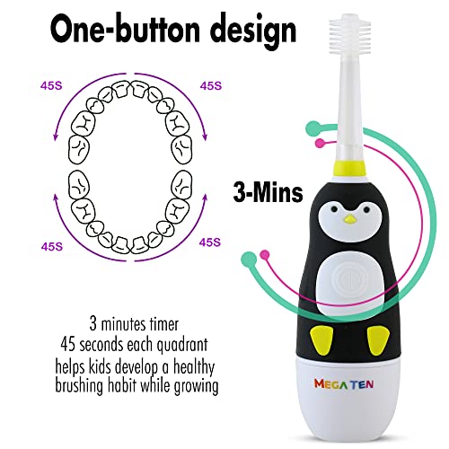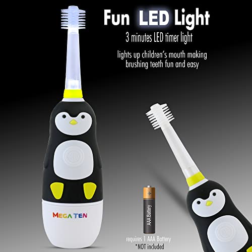 Brilliant Kids Sonic Toothbrush Characters – Kids Electric Toothbrush with Flashing Lights and Fine Bristles – Fun Brushing for Parent and Child, Ages 3-8 (Penguin)