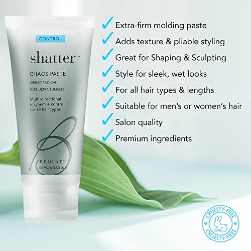 Brocato Shatter Chaos Hair Paste, 6 Oz | Molding Styling Gel for Men & Women with All Hair Types | Shaping & Sculpting Mousse for Salon Quality Hairdos | Apply to Wet, Dry or Heat Styled Hair