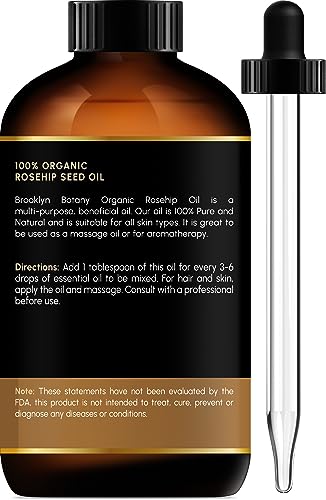 Brooklyn Botany Organic Rosehip Oil for Face, Skin and Hair – 100% Pure and Natural Organic Rosehip Seed Oil – Use as Carrier Oil for Essential Oils, Aromatherapy Oil, Massage Oil, Body Oil – 4 Fl Oz