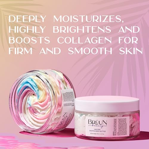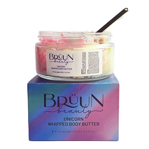 BRUUN Beauty Unicorn Whipped Body Butter Cream – A 4.4 oz Organic Shea Butter Jar for Face and Body Skin Care with Jojoba Oil for Men and Women