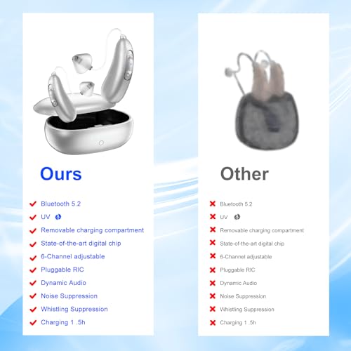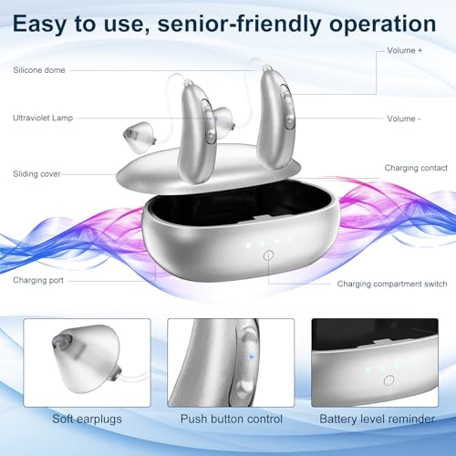 【Top-notch Features】As genuine hearing aids, we ensure all materials and features are highly reliable! The charging case comes with UV equipment to help maintain ear health. Nelpo Hearing Aids for seniors & adults only require approximately 1.5 hours to charge but offer over 10 hours of standby time! The case also includes different sizes of earplugs for easy replacement and comfort.