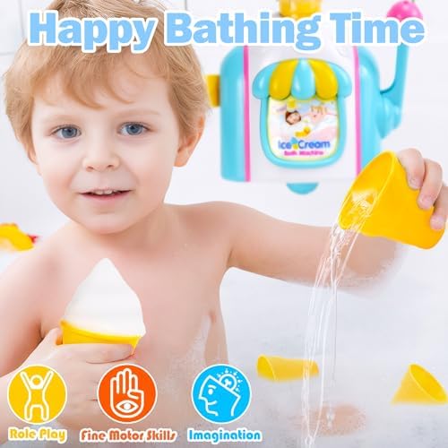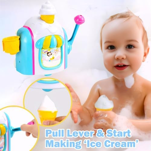 Bubble Ice Cream Maker Bath Toy, Bathtub Bubble Machine Shower Toys for Kids Toddler Age 3 4 5 6 7 8