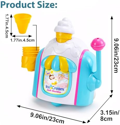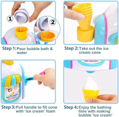 1. Fun for Bath Time Role Play: With our set of bathtub ice cream toy, featuring four ice cream cones and one ice cream maker, kids can produce their own bubble ice cream, adding fun to bath time, suitable for bath time role play.