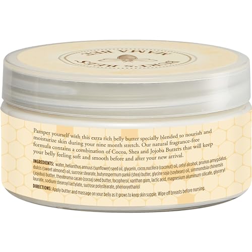 A richly blended belly butter to gently and safely moisturize and nourish mamas stretching skin. Burts Bees Mama Bee Belly Butter with Shea Butter and Vitamin E conditions your growing belly with cocoa, shea and jojoba butters. This 99% natural, fragrance free formula can keep your skin smooth and supple as your belly stretches throughout pregnancy and even after baby arrives. Burts Bees Mama Bee Belly Butter contains no phthalates, parabens, petrolatum, or SLS, and it wont irritate your skin so you can use this balm with peace of mind. Pamper yourself with Mama Bee during your nine month stretch.