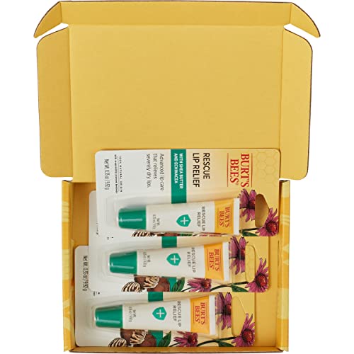 RESCUE LIP RELIEF: Three 0.35 oz. tubes of Burt’s Bees Rescue Lip Relief Lip Balm with shea butter and echinacea to hydrate and replenish extremely dry lips
