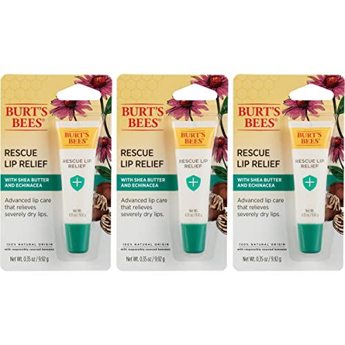 Burt’s Bees Rescue Lip Relief Lip Balm, With Shea Butter and Echinacea, Tint-Free, Natural Origin Lip Care, 3 Tubes, 0.35 oz.
