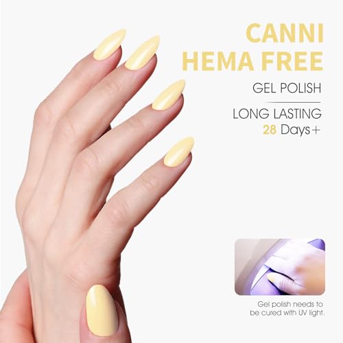 CANNI Pastel Yellow Gel Nail Polish, 1Pcs Pale Light Yellow Gel Polish Butter Neon Yellow Color Nail Polish Gel High Gloss Soak Off U V Gel Nail French Nail Manicure Salon DIY