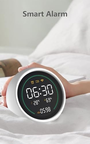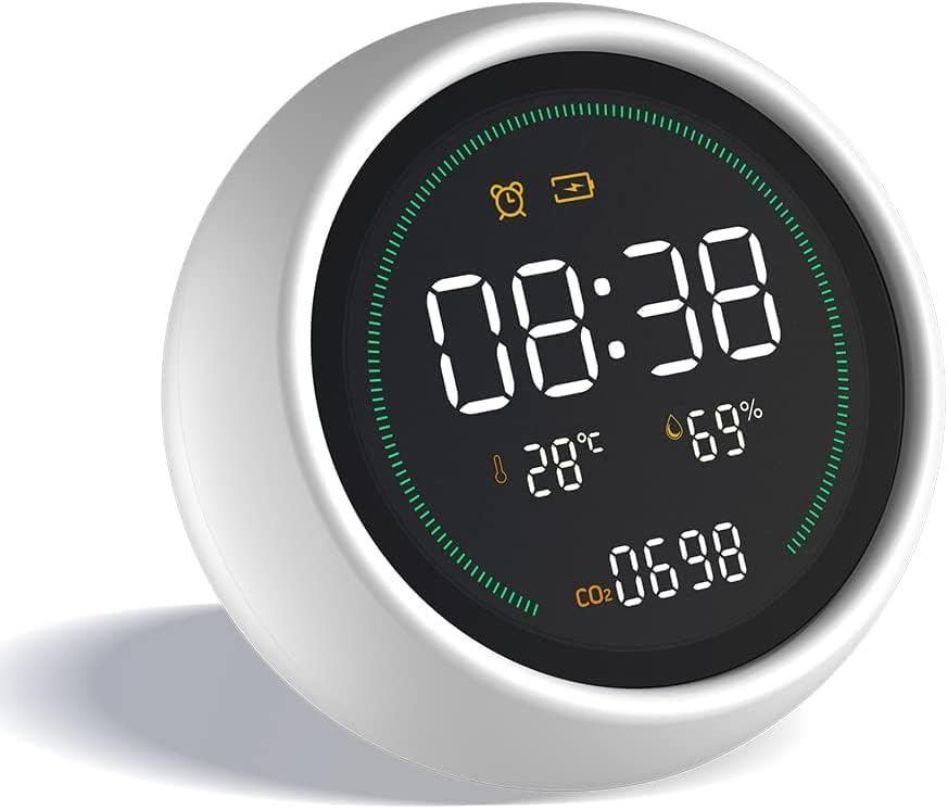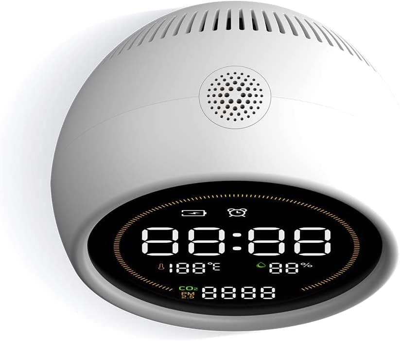 MULTIFUNCTIONAL & SCIENTIFIC – This indoor air quality monitor accurately assesses temperature, relative humidity level, and multiple measures of air quality including concentrations of carbon dioxide (CO2) and fine particulate dust matter (PM2.5) which travel deeply into the respiratory tract, reaching the lung alveoli and leading to allergies and asthma exacerbations.