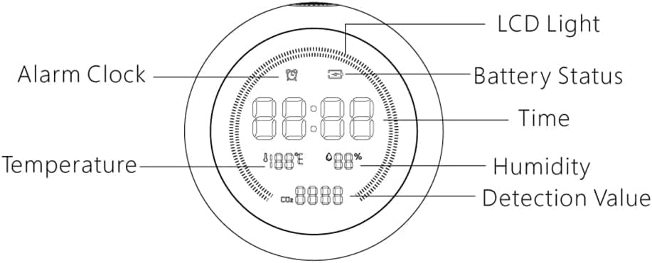 PM2.5 Range 0-999 μg/m³ CO2 Range 400-5000 ppm Power Source DC 5V USB charging Battery Type 2200 mAh lithium battery Product Dimensions 100 x 100 x 65 mm