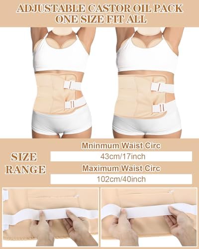 Adjustable Castor Oil Body Wrap – Castor Oil Pack Wrap for Plus Size, Small Size, Medium size: The castor oil pack set is designed with an elastic waist strap, minimum waist size 17inch, maximum waist size 40inch. Please check your waist size before get our castor oil for body wrap. Ps: Do not use castor oil pack if you are pregnant or breastfeeding.