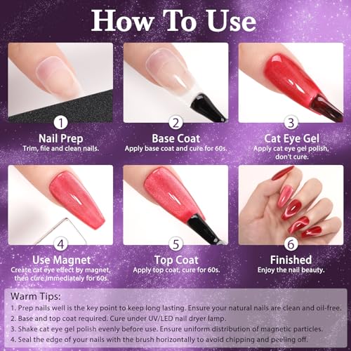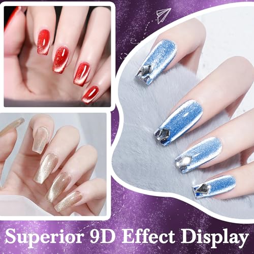 Healthy Natural Ingredients: Our glitter cat eye nail polish is made of natural resins with healthy ingredients, safe, gentle, non-toxic, and low odor. Premium salon quality, with finer magnetic particles and intense colors, you can easily create a more sparkly and stunning cat eye effect with every application.