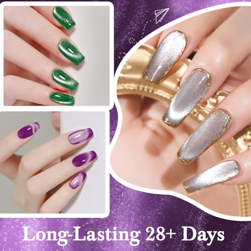 Easy to Apply, Good Quality: Our cat eye gel nail polish can maintain a bright gloss for more than 28 days when applied correctly, and has good toughness. All-in-one gel nail polish set, an ideal nail art gift for women, suitable for family or friends on birthdays, Mother’s Day, Valentine’s Day, Christmas and other holidays.
