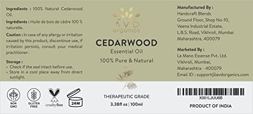 100% Pure and Natural: AVD Organics Cedarwood Essential Oil is 100% pure and natural, extracted through the process of steam distillation. This means it is free from toxins, additives, or any nasty chemicals. Completely unfiltered and undiluted for the best result.