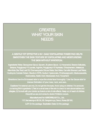 GENTLE SKIN EXFOLIATOR: Provides gentle yet effective exfoliation with BHA, an exfoliator that works inside the pore to remove dead skin cells and control sebum generation, creating a smooth and moist complexion. A quick & easy daily toner pad for gentle exfoliation and moisturization without irritation.