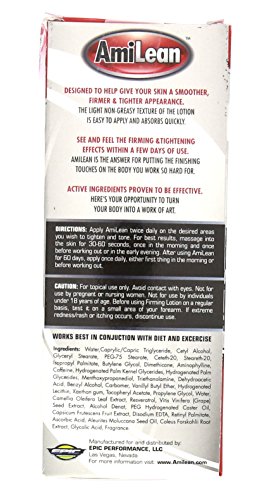AMILEAN Cellulite Cream and Firming Lotion Delivers Rapid Results You Can See and Feel In Just a Few Days! Helps Reduce Cellulite and Body Fat Deposits Clinically Tested and Proven Successful Uses Fast-Acting Liposome Delivery Technology Easy To Apply, Non-Sticky & Non-Greasy