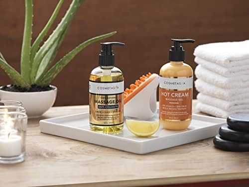 Cellulite Massage Oil, Gel & Mitt – Natural Hot Cream Massage Gel, Oil & Massager – Firm, Tone, Tighten & Moisturize Skin. Soothes Muscles