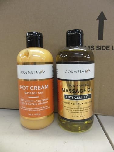 Cellulite Massage Oil & Hot Cream – 100% Natural Cellulite Oil & Gel, Highly Absorbable, Firm, Tone, Tighten & Moisturize Skin – Soothes Muscles (16.9 Fl Oz Each Bottle)
