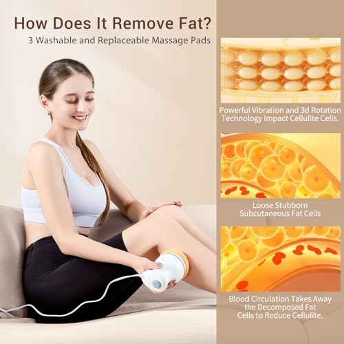 Cellulite Massager Electric, Remover Body Sculpting Machine with 3 Massage Heads and 3 Skin Washable Pads, Beauty Sculpt Massager for Belly Legs Arms, Handheld Body Massager with Adjustable Speeds