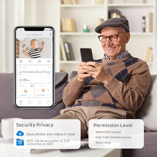 Expert Secure Safety–Save photos and videos in local, with built-in 32GB TF card. Both 2.4GHz and 5GHz Wi-Fi can be used. AES 128-bit encryption and TLS connection provide exceptional security for your data. New optional sharing permissions let you safely and securely add multiple users, control who sees what, and share your baby’s moments. Cheego all-in-one smart monitor is a baby registry must-have!
