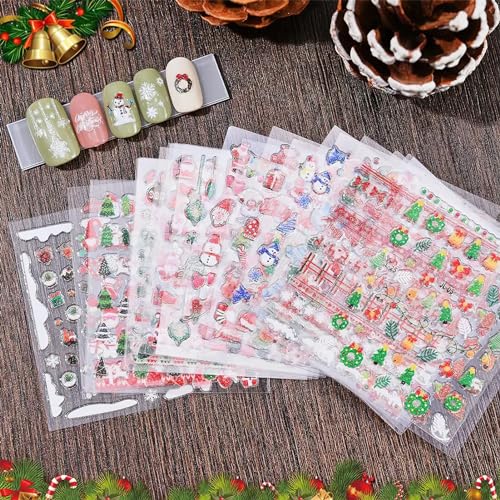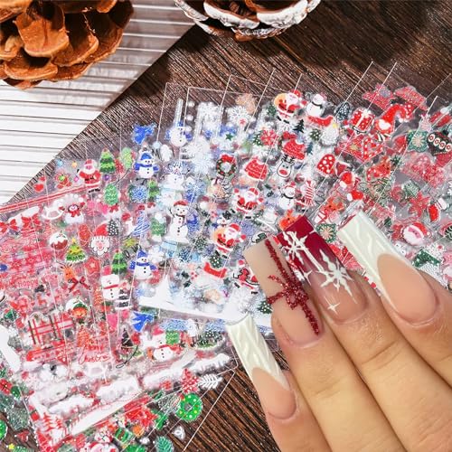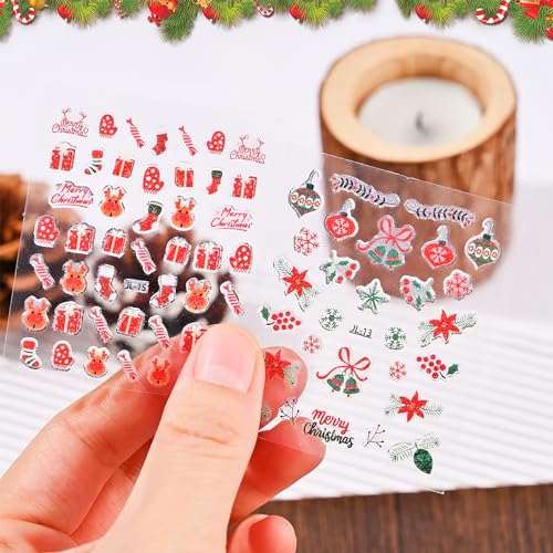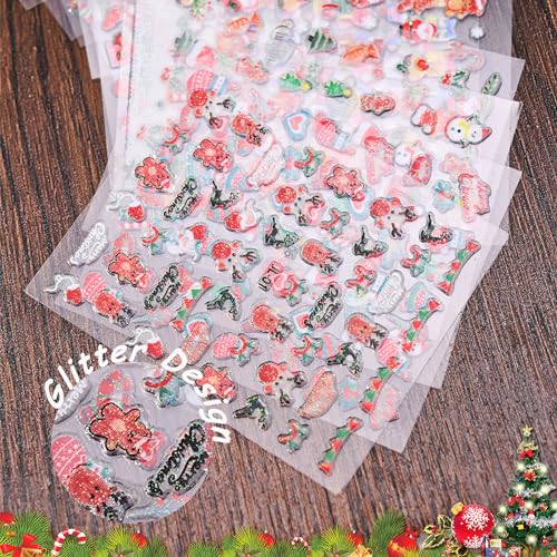 Christmas Nail Art Stickers Santa Claus Glitter Decals Stickers 3D Self-Adhesive Xmas Tree Snowflake Winter Nail Decals Socks Deer Nail Supplies Design for Women Girls Nail Art Decoration 30 Sheets