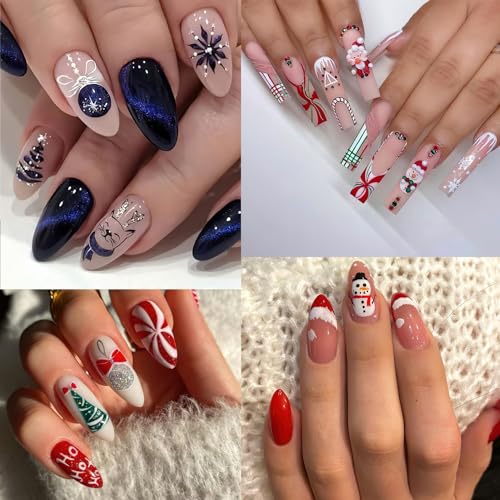 【EASY TO USE】 Our Christmas nail stickers are self-adhesive. And our stickers is not water transfer, so just stick them on your nails, easy and time-saving. Similarly, just peel off them if you want to remove them.