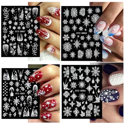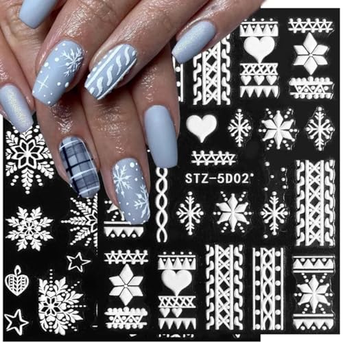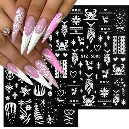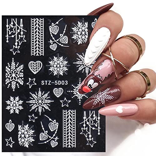 Design: Christmas-themed 5D white nail art stickers