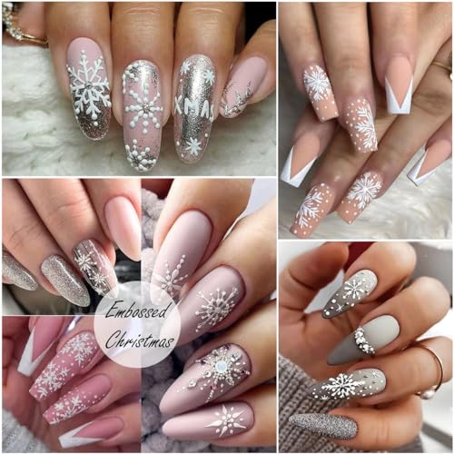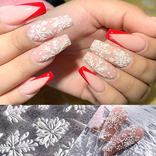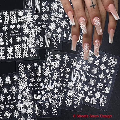 8 Sheets 5D Stereoscopic Embossed Snowflake Nail Stickers – 5D Christmas Snowflake Nail Decals – Christmas Snow Nail Designs – Christmas DIY Nail Art Decoration for Women Girls Holiday Manicure Accessories Decals