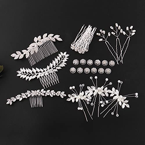 Cinaci 41 Pack Sparkly Silver Rhinestone Leaf Flower Pearl Bridal Hair Side Combs+U-shaped & Twist Hair Pins Clips Barrettes Wedding Headpieces Accessories for Women Girls Brides Bridesmaids