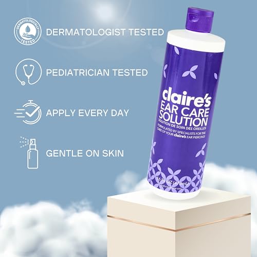 Claire’s 16 Fl Oz Aftercare Ear Piercing Cleaner Solution – Designed to Avoid Infections on Pierced Ears, Nose Piercings, and Belly Button Piercings – Ideal Hole Cleaner for Piercings