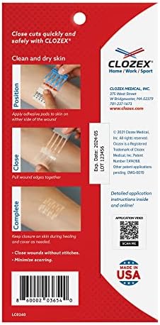 MEDICAL GRADE, FDA CLEARED CLOSURE: Developed for medical professionals for use in surgery, emergency room and urgent care centers, Clozex has been cleared for personal use as an over- the- counter wound closure device. Clinically proven in numerous clinical studies at top-tier hospitals.