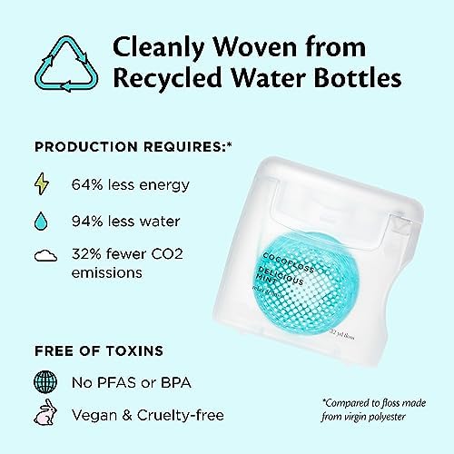 PLANET-FRIENDLY, CLEAN, AND CRUELTY-FREE: Cleanly spun from ~85% recycled water bottles; refillable dispenser; less waste than plastic picks and flossers; free of parabens, sulfates, and PFAS; no irritating flavors; Leaping Bunny–certified cruelty-free.