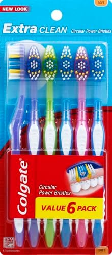 Colgate Extra Clean Toothbrush, Soft Toothbrush for Adults Packaging May Vary, 6 Count