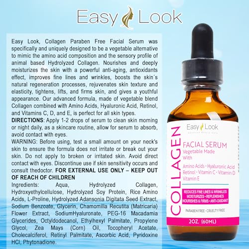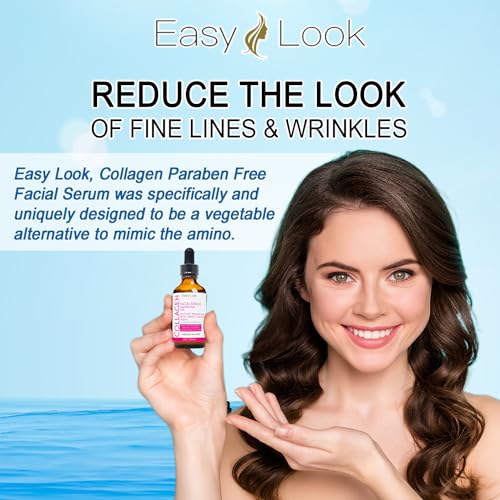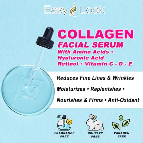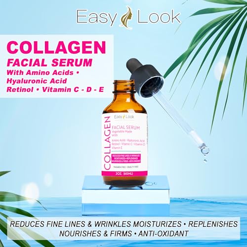 EASY LOOK Collagen Serum for Face – Anti-Aging Facial Serum, Tighten Lift Hydrate & Plump All Skin Types, Reduce Fine Line & Wrinkles 2oz
