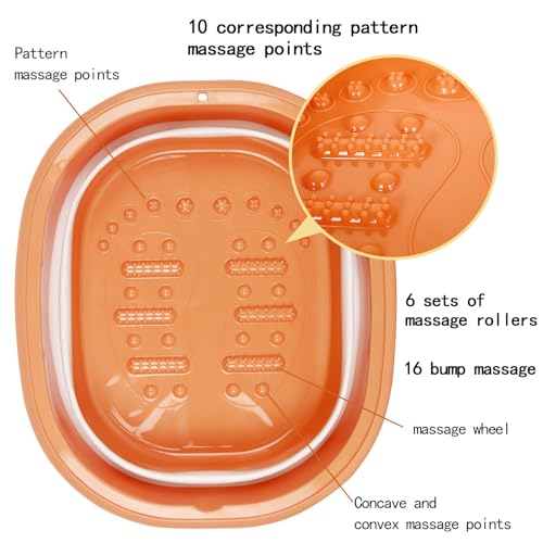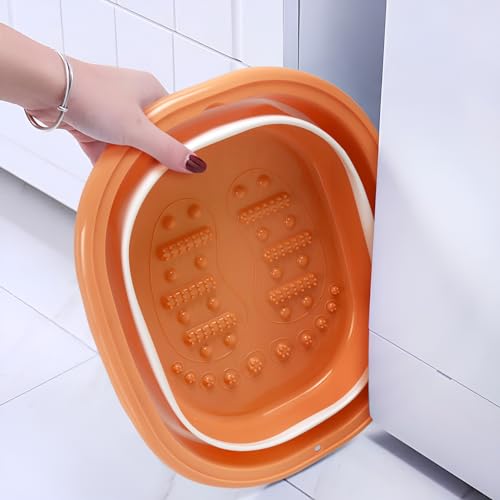 Collapsible Foot Bath Basin Foot Soak Tub with Handle Foot Spa Bath Feet for Dry Cracked Feet, Pedicure Foot Soak, Home Spa Treatment – Orange