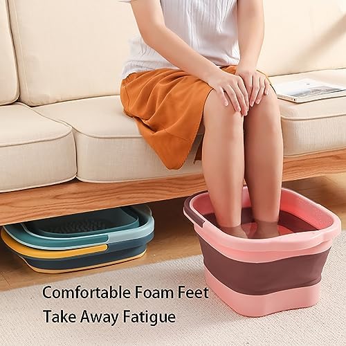 👣FOLDABLE DESIGN FOR EASY STORAGE: This collapsible foot spa can be easily folded and with a hidden handle, the size after folding is only: 17.0”*13.2”*3.0”. The foot tub can be easily placed under the bed, in the drawer, car, behind the door, does not take up more space. It is very suitable for travel and camping