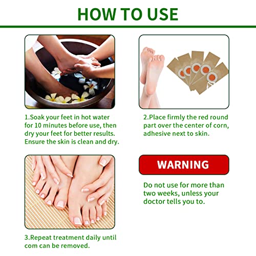 🦶Suggestions for Use: Soak your feet in warm water for about ten minutes to soften the surface of the corns, dry your feet, and then align our patch cores with the corns to fix. Each patch can be used for about 24 hours. When the corn turns white or slightly painful, remove the corn patch and the white skin and drug residue on the corn, apply a new corn patch. Generally, this kind of use will remove corns in about several days.